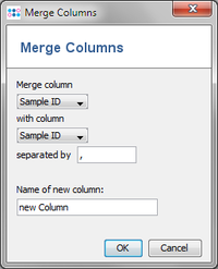 • Merge Two Columns: Creates a new column by concatenating the values from two given columns. A separator can be specified that is used to separate the content of the two columns