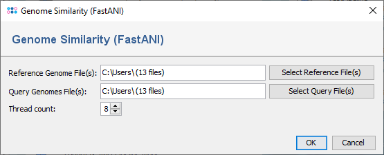 Genome Similarity (FastANI) Dialog