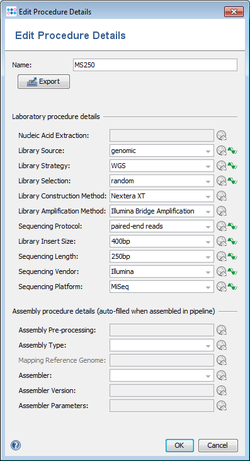 If a new Sample is created from genome data Procedure Details can be assigned to Samples. In addition, the laboratory and assembly procedure details of an existing Sample can be edited.