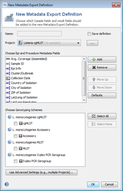 • All genotypings for the selected project are then listed in the Choose Genotyping Schemes box. Checking one or more of these typings adds the typing results to the field Export Definition.