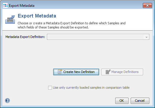 The checkbox Create for currently loaded Samples can be marked to skip the search criteria from the selected Metadata Export Definition and to export the data for the currently loaded Samples.