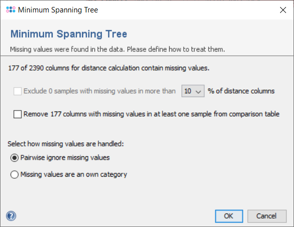 Dialog for handling missing values when creating a MST