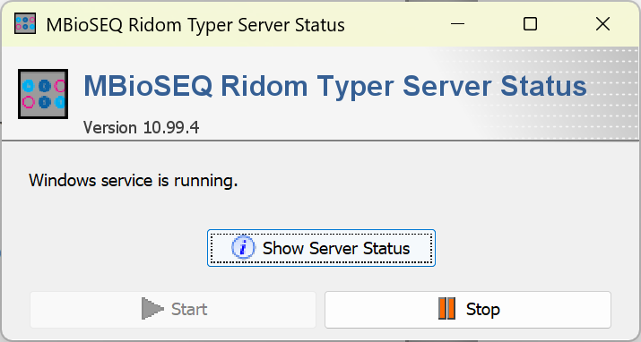 Server Installation on LinuxExtract the installer package (tgz) into the directory where you want to install the Ridom Typer server (e.g., with command 'tar xvzf MBioSEQ_Ridom_Typer_SERVER*'). By default, the server listens on port 8064, therefore this port must be excluded in a firewall. If the Ridom Typer server should be used by multiple users, an installation as Systemd Service is recommended. Start with graphical user interface (for single user usage)Click or start in a terminal the shell script ridomtyperserverGUI.sh in the extracted directory RidomTyperServer. The database is by default located in the working directory .ridomtyper-server/ of the home directory of the Linux user. So every user who starts the server will get his own database. Start without graphical user interfaceThe run control script rcridomtyperserver.sh can be used to control the Ridom Typer server: