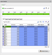 Below this table, the similarity search results are shown for each allele. The toolbar above this table shows the following buttons: