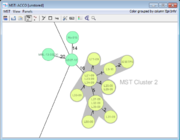 • Button16-Chain.gif Disconnect MST from Table: Changes in the table will not update the MST any more. Opening a new MST window is possible after a MST was disconnected. This option can be used to compare MSTs for different data or settings. Note that the labels cannot be changed anymore after the MST was disconnected.