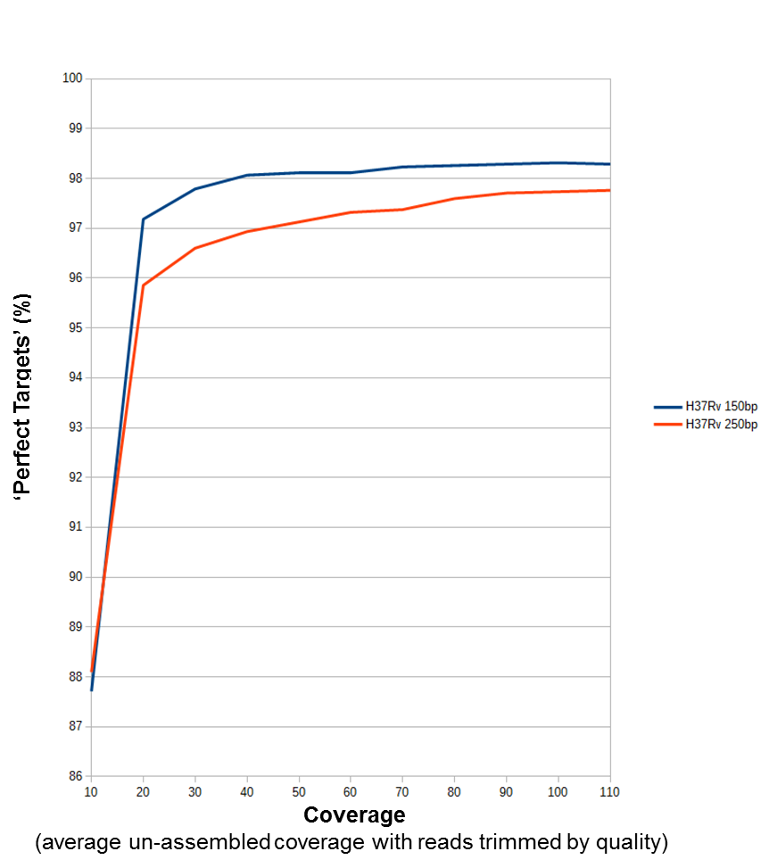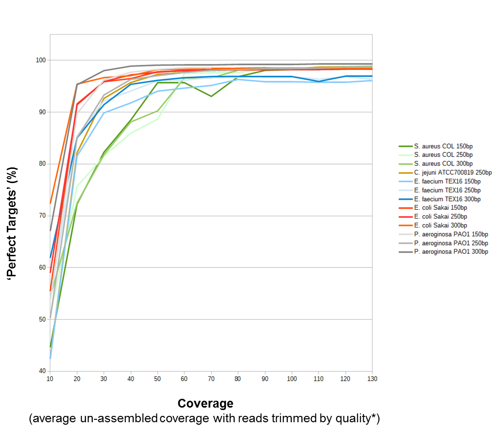Effect of coverage for de novo assembling on perc. good targets