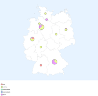 When multiple Samples are located at the same position, they can be displayed using three different modes on the map: