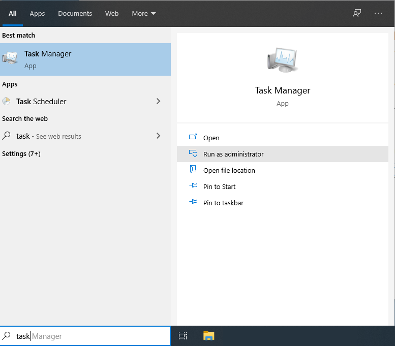 • Step 3: Click on Run as administrator to open the Task Manager window. If your current account does not have administration rights, you will be asked for an administrator password.