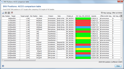 - This hides all SNV positions that have an non-synonymous change in the amino acid at the SNV position (compared to Ref.-Seq. column). The synonym/non-synonym effect is also shown in the column Effect to Ref.-Seq.
