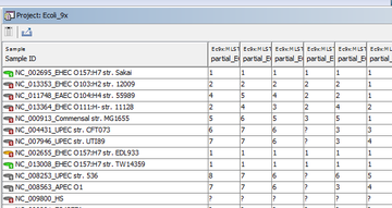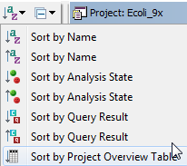 Double click a Project-node in the navigation tree or select "Open" in the context menu to view the Project overview table. This table displays field values for the loaded Samples of the Project. The displayed columns can be changed using the The table can be sorted by clicking the column headers. The sort order can be transferred to the navigation tree by selecting To open a Sample, double-click a Sample field in the table. To open a Task Entry, double-click a Result Field in a column from this Task Entry. |