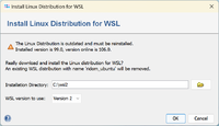 The WSL version that was used for the previous installation is pre-selected. Click OK to download and install the new Ridom Linux distribution.