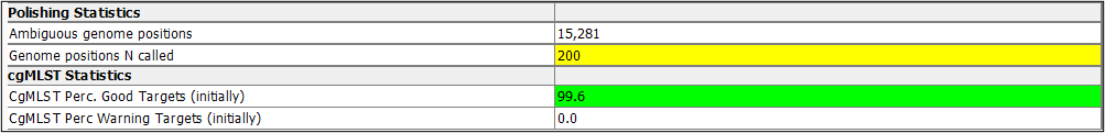OverviewThe proprietary ONT-cgMLST-Polisher is part of the SeqSphere+ version 10.5 ONT Data Assembly module. First, it maps the with Dorado SUP basecalled FASTQ reads (>= m4.2 model) to the from Medaka derived assembly consensus FASTA sequence by using minimap2. Next, it scans the alignment for positions in the core and accessory genome MLST genes that might be indicative for methylation related sequencing errors, e.g., differing strand-specific majority consensus calls. Those ‘ambiguous’ positions are then compared against a sequence with a closely related cgMLST allelic profile. Finally, based on the comparison the consensus sequence of ambiguous positions is either confirmed or masked with a ‘N’ call. Thereby, core genome genes that contain a ‘N’ are regarded as missing targets as they fail the quality control that allows by default for no ambiguous bases. When the ONT-cgMLST-Polisher is used with Dorado SUP m4.2 or m4.3 data, samples with a significantly increased number of called ‘Ns’ are highlighted in yellow to indicate that they may have unreliable results. Data basecalled with Dorado SUP m5.0 or greater are not highlighted.