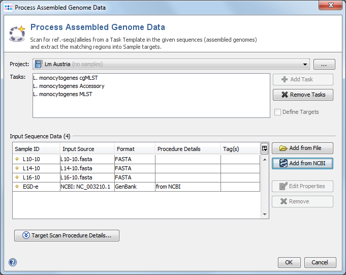 Use the menu function Button16-NewSampleFromWGS.png File | Process Assembled Genome Data to open a dialog window.
