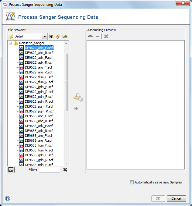The DNA Sequence files in SCF, ABI or FASTA file format are accepted.