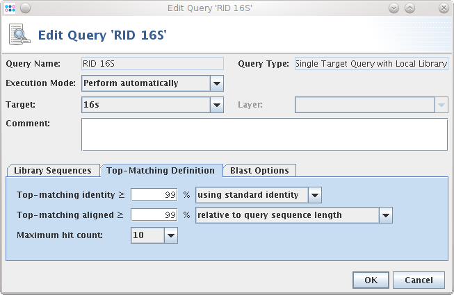 The Top-Matching Definition are used to define which query result should be taken as reliable. Two different thresholds can be defined: