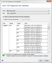 Press the button BatchAdd.gif Sort Reads into Samples between the file browser and the assembling preview, to start the automatic sorting of reads into Samples.